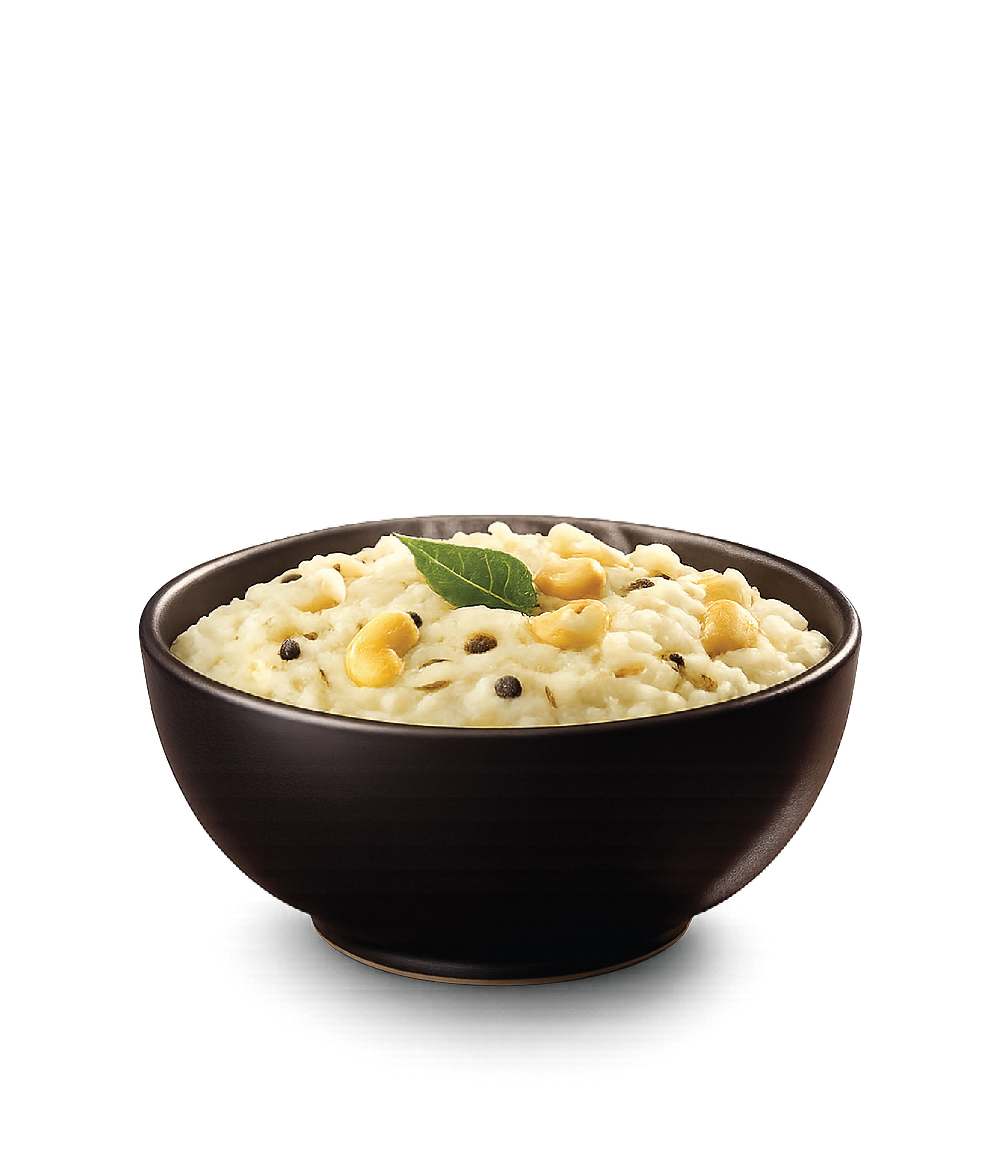 The authentic taste of traditional South Indian ven pongal,  creamy texture, aromatic tadka, and comforting flavours as homemade – in just 3 minutes. Wholesome meal with rich source of protein and fibre