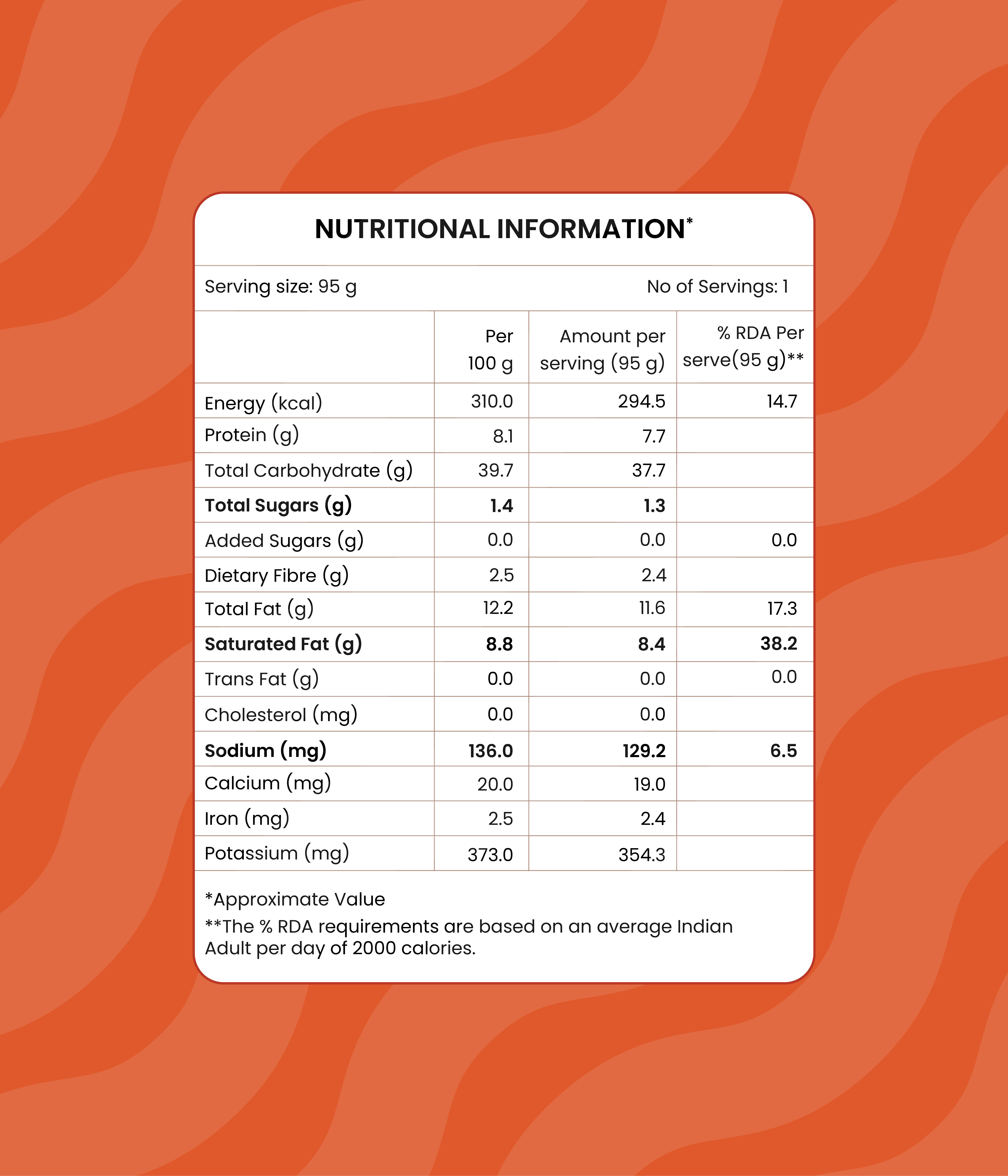 Rice Semolina (47%), Onion, Edible Vegetable Oil (Coconut Oil), Cashew Nut, Carrot, Coriander Leaves, Beans, Salt, Ginger, Mustard Seed, Urad Dal, Bengal Gram Dal, Green Chilli, Curry Leaves, Lemon & Spices and Condiments |
